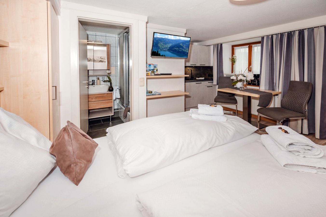 Inklusivlleistungen: In unseren Appartements befindet sich im Bad, Duschgel, Seife, Handtücher; Geschirrtücher, Tischwäsche und Bettwäsche.